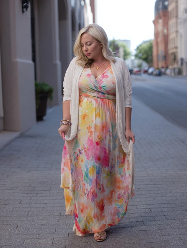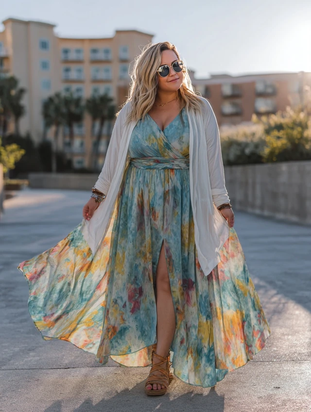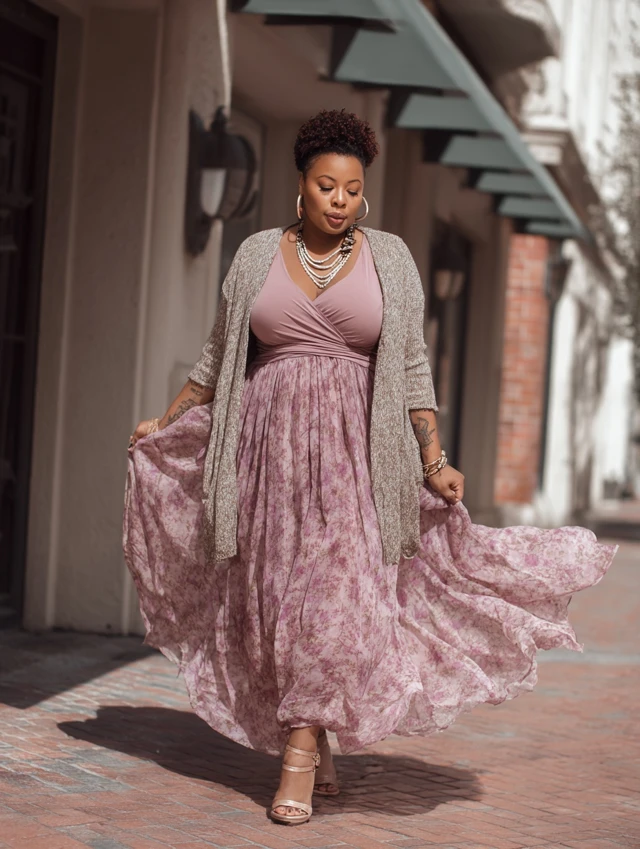 3. Flowy Maxi Dress + Lightweight Cardigan