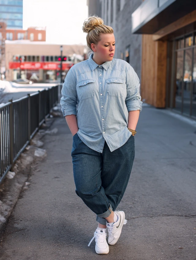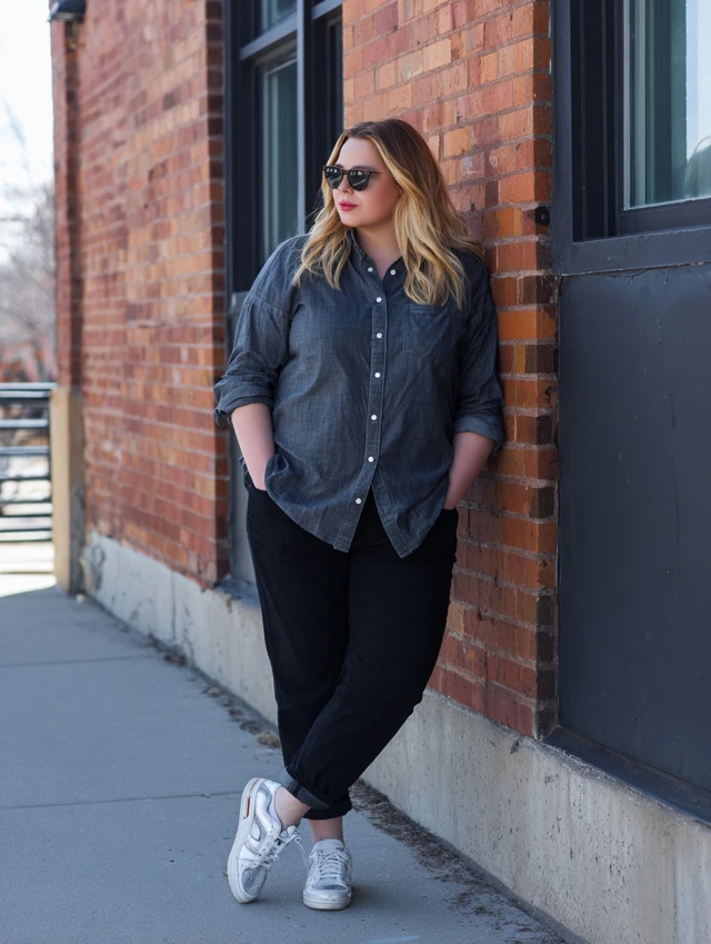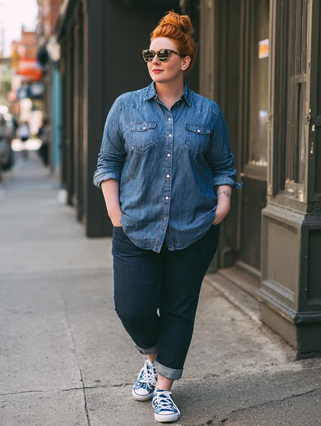 5. Dark Jeans + Button-Down Shirt + Sneakers