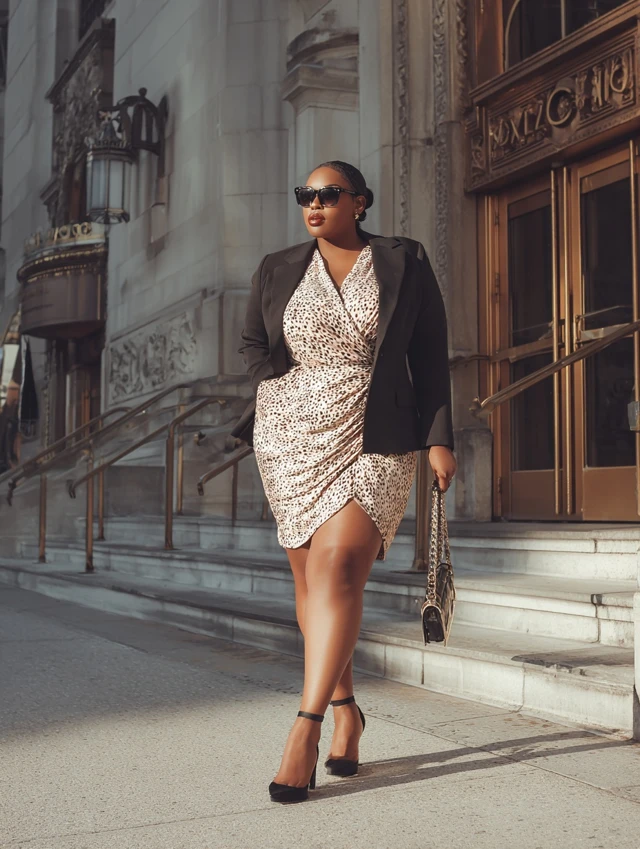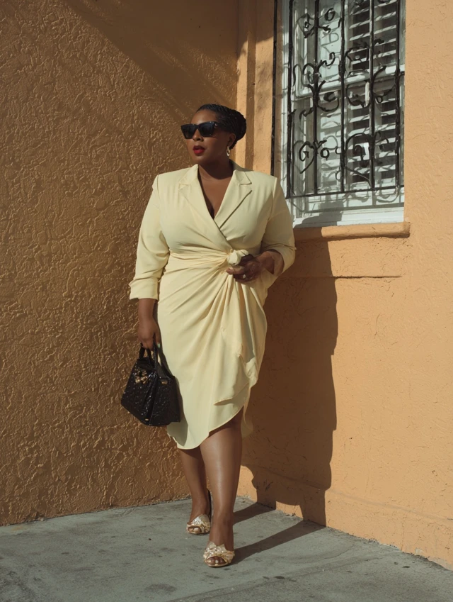 Why It Works: Flatters curves while staying professional.