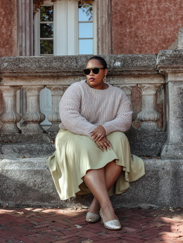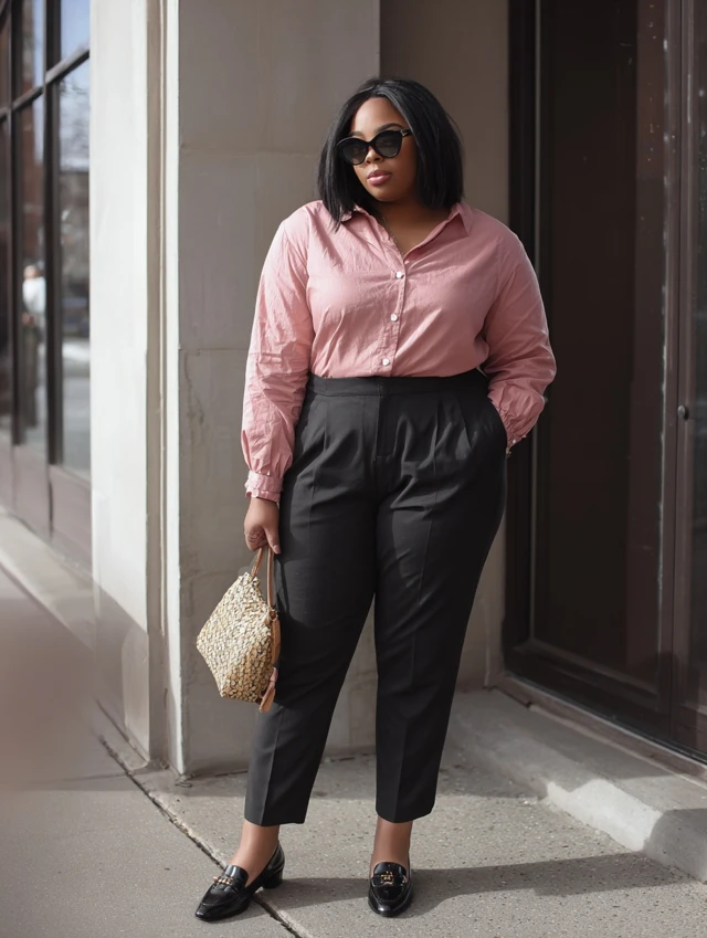 - Footwear: Flats, loafers, block heels, or stylish sneakers.